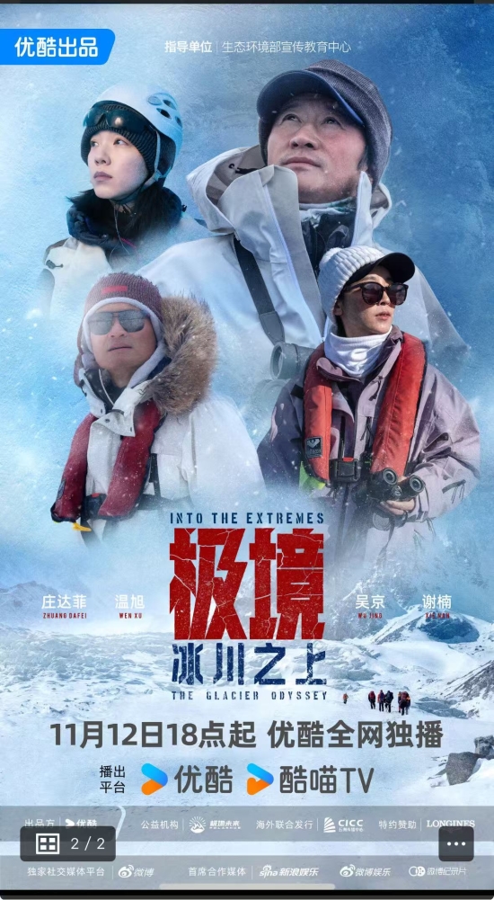 由生态环境部宣传教育中心指导、优酷出品的纪录片《极境:冰川之上》定档11月12日18点(根据实际情况调整)登陆优酷。影片镜头跟随吴京、谢楠、庄达菲、温旭坚实而勇毅的脚步,探索地球尽头的南极大陆,记录那神秘而正在消融的冰川世界,读懂人与自然和谐共生的深刻内涵,共同书写守护这片未知极境的绿色篇章。