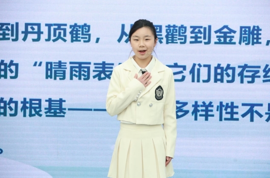 今年的活动面向 4 至 16 岁少年儿童群体,在保留自然创意绘画版块的基础上,创新拓展了中英文环保演讲、AI设计作品征集等多元参与形式,引导孩子们从家乡与生活出发,发现、思考并表达身边的环保故事,通过认知、情感、实践的多维融合,建立个人与环境的情感纽带,深刻理解人与自然和谐共生的内涵。来自英孚北京校区的学生杨唯琛带来了精彩的少儿环保演讲,用稚嫩却坚定的语言讲述生态环保故事、传递绿色理念,充分展现出新时代少年的生态担当。