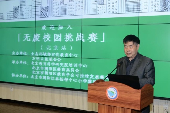 10月15日上午,“无废校园挑战赛”项目在北京市朝阳区垂杨柳中心小学举办了北京站首场项目宣讲会,会议由生态环境部宣教中心和万科公益基金会联合主办,北京教科院培训中心、朝阳区教育委员会承办。来自中国教育发展战略学会、北京教科院、万科公益基金会的代表和北京地区50余所中小学校负责人共聚一堂,一起就无废城市理念的宣传实践和无废校园建设进行了交流。